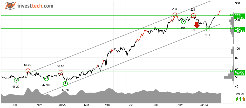 Upplysning: Artikeln är baserad på material från analystjänsten Investtech som publicerades 2023-03-02. Artikeln innehåller samarbetslänkar till Avanza. Börskollen / Investtech garanterar inte fullständigheten eller korrektheten av analyserna. Eventuell exponering utifrån de råd/signaler som framkommer i analyserna görs helt och fullt på den enskilda investerarens räkning och risk. Börskollen / Investtech är inte ansvarig för någon form för förlust, varken direkt eller indirekt, som uppstår som en följd av att ha använt dessa analyser.
