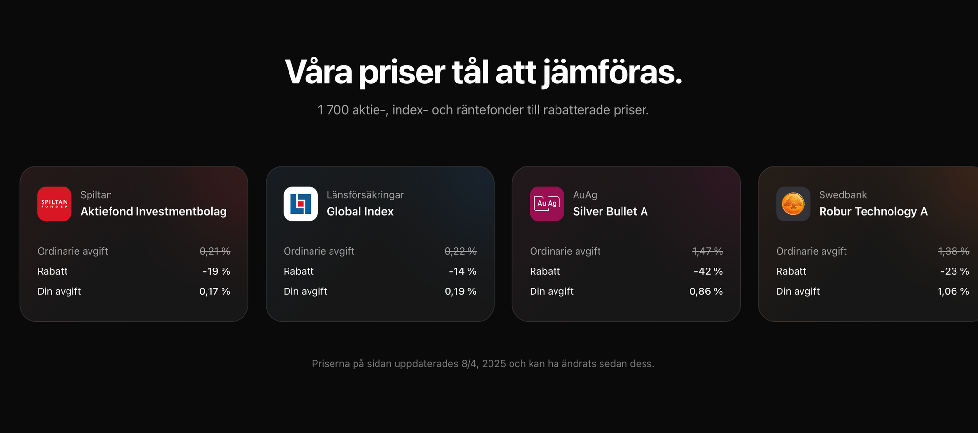 - Upp till 50 % lägre fondavgifter.