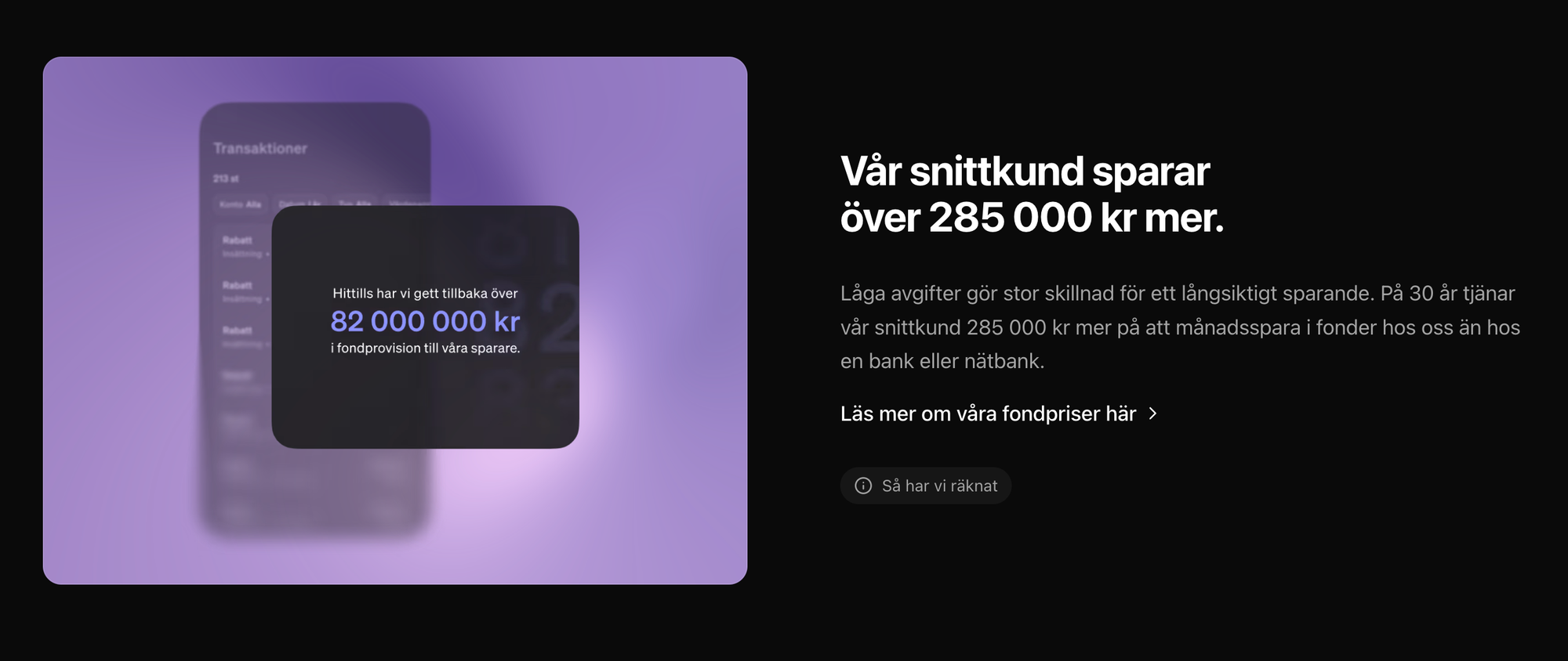 Ofta 30–50 % lägre fondavgifter jämfört med traditionella aktörer. På lång sikt kan det innebära hundratusentals kronor mer, tack vare ränta-på-ränta.