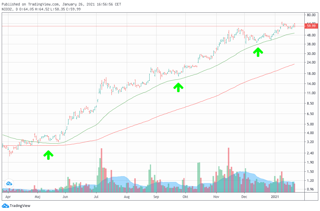- Vid rekyler i upptrend kan medelvärdet fungera som stöd.