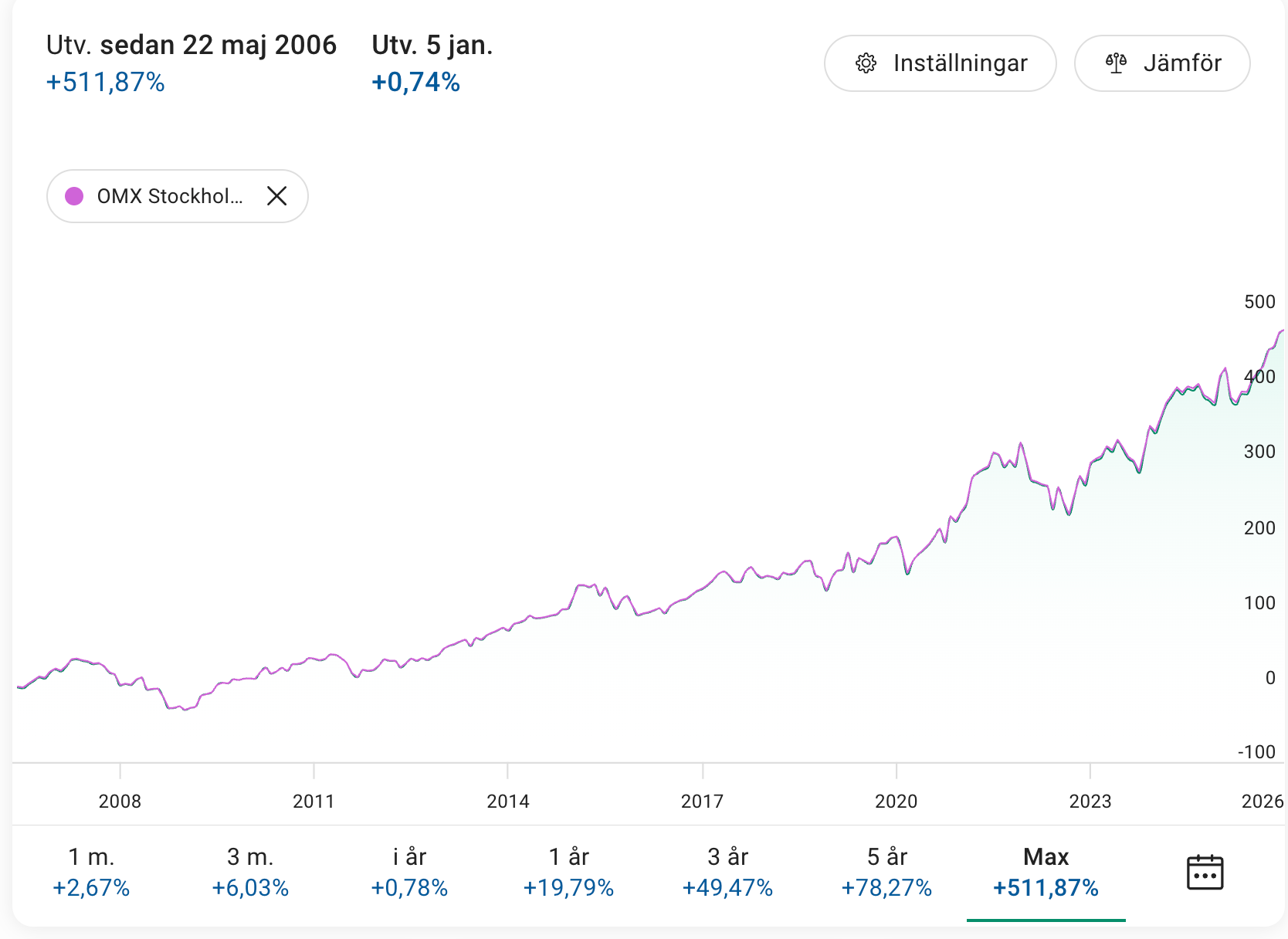 Sedan fondens start 2006 har den levererat en imponerande totalavkastning på ca 512 % per 7 januri 2026. Det innebär att ditt sparade kapital mer än fördubblats flera gånger om sedan starten.