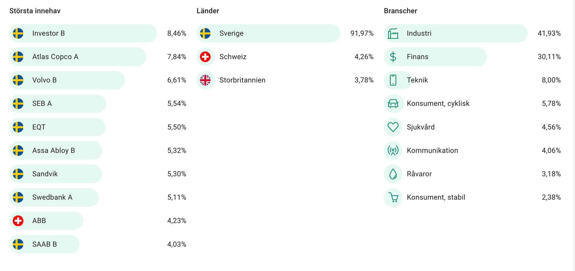Det innebär att du får exponering mot stora svenska bolag utan att betala någon fondavgift.