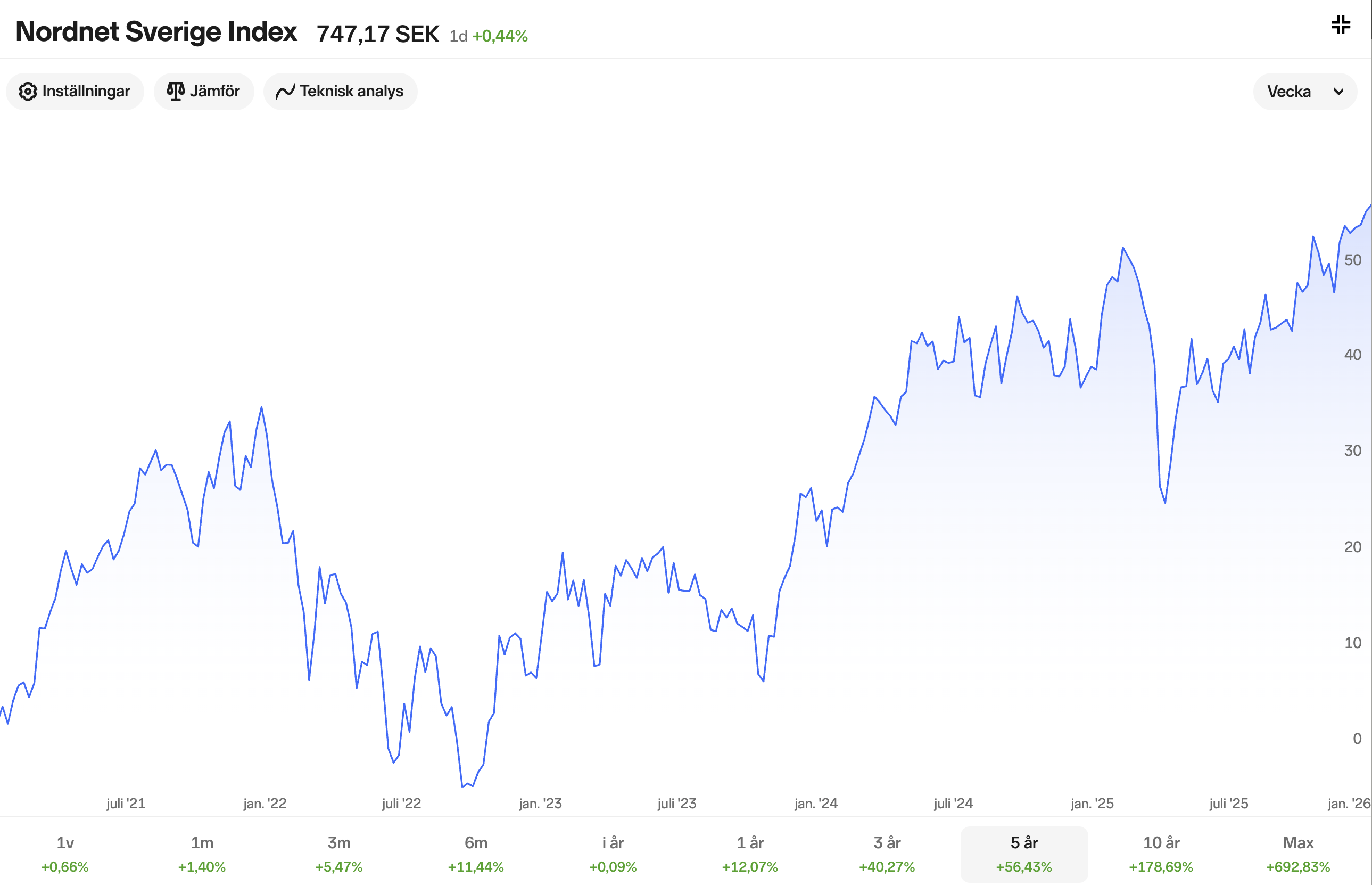 Dessa erbjuder alla bred exponering mot svenska aktier utan löpande avgifter – perfekt för långsiktigt sparande.