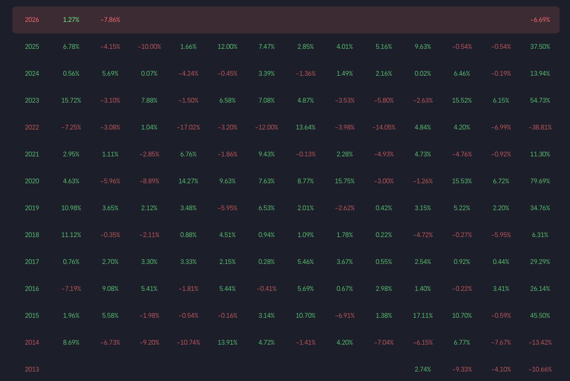 Sedan start, för över 12 år sedan, har den klara majoriteten av åren varit positiva och hans genomsnittliga årliga avkastning, cagr, ligger på drygt 20 procent.