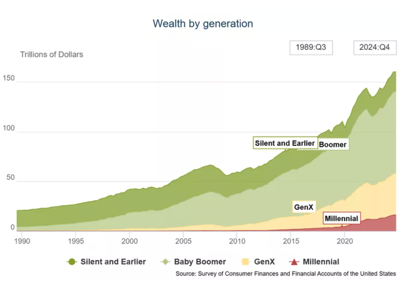 I början av 2025 kontrollerade boomers över 50 procent av den sammanlagda förmögenheten hos amerikanska hushåll.