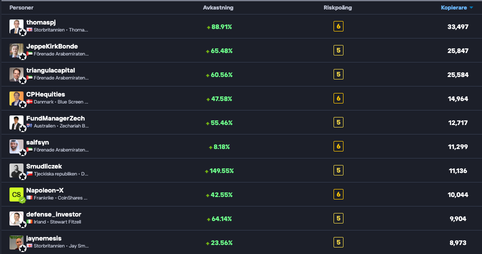 Innehåller annonslänkar till eToro. Copy trading innebär inte investeringsrådgivning. Värdet på dina investeringar kan gå upp eller ner.