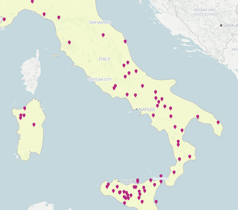 | Italien | ca 25 % | Framför allt Sicilien, Toscana, Ligurien och Sardinien |