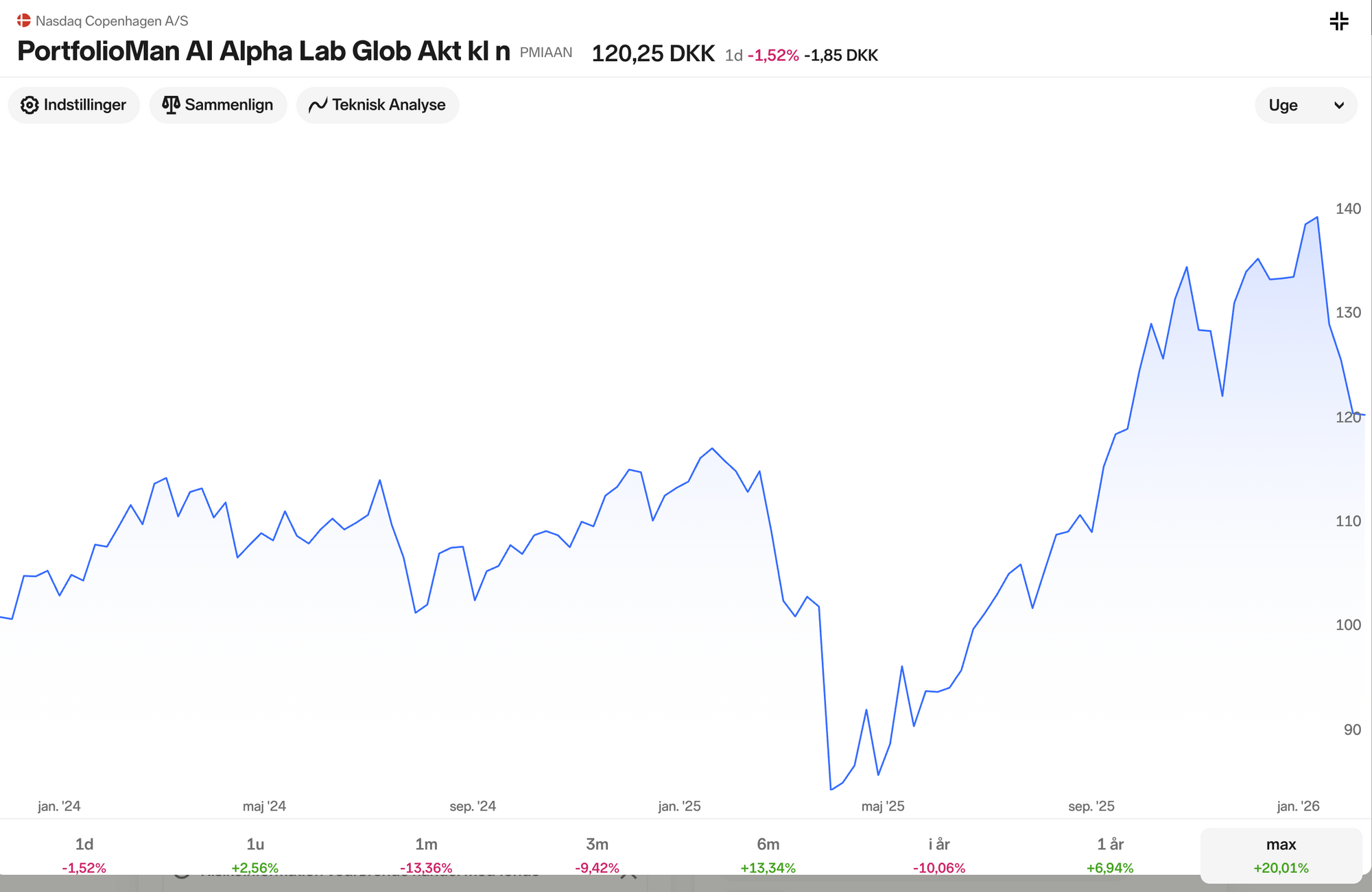 Tre år efter lanseringen av AI Alpha Labs portföljer hos Nordnet Danmark kan man konstatera att avkastningen har sett olika ut – och resonera mer kring orsaker och urval. Den amerikanska portföljen har överträffat sitt jämförelseindex med råge, medan de nordiska och danska portföljerna visar svagare resultat.