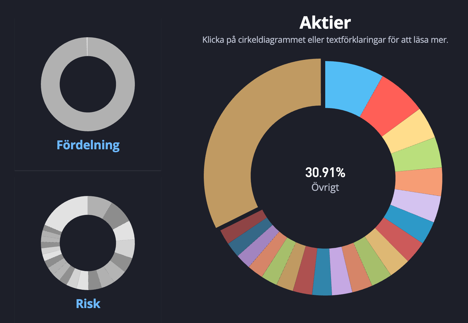 Portföljen innehåller även amerikanska aktier, vapenrelaterade bolag samt exponering mot råvaror som guld. Vapenaktier har aldrig utgjort mer än tio procent av portföljen och ligger idag på cirka nio procent. Bonde påpekar att denna exponering kan minska risk vid geopolitisk oro.