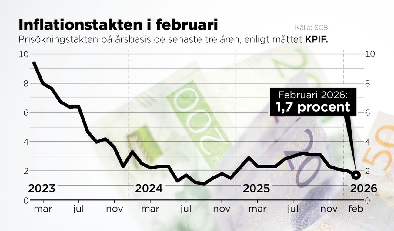 Nedgången för inflationen i februari ligger i linje med den preliminära beräkningen från SCB i förra veckan.