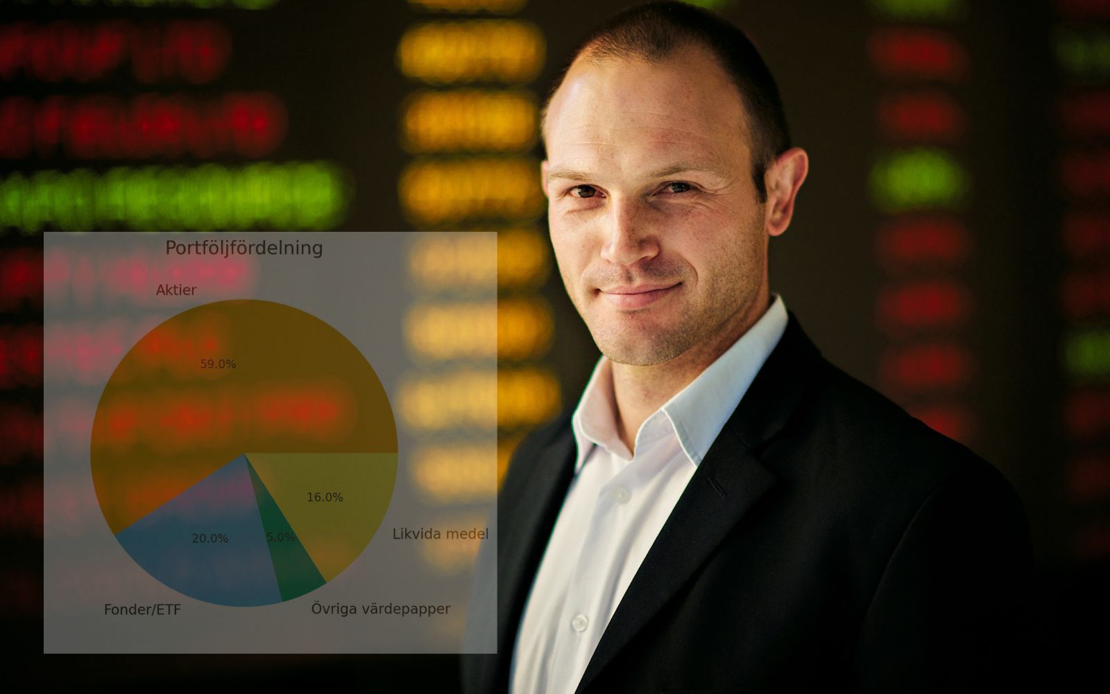 Tillgångarna fördelas huvudsakligen på aktier (59 procent), fonder och ETF:er (20 procent), övriga värdepapper (5 procent) samt likvida medel (16 procent).
