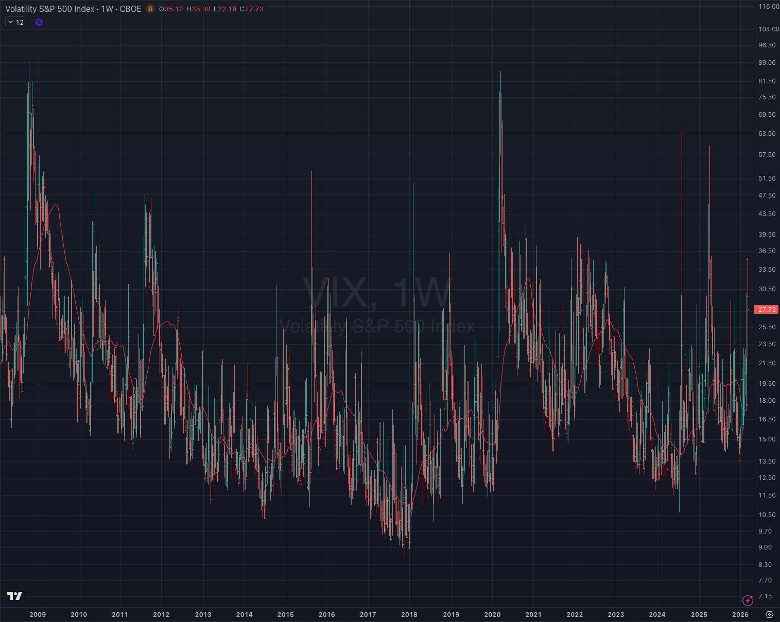 Vi tror att den maximala rädslan ännu inte är nådd, och marknaden kommer fortsätta ned tills VIX passerar 40 eller en lösning i Mellanöstern syns.