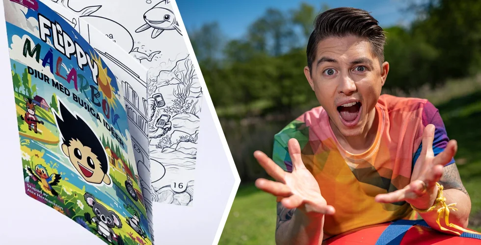Influencern Alexander Hermansson säljer målarböcker och pennor till barn.