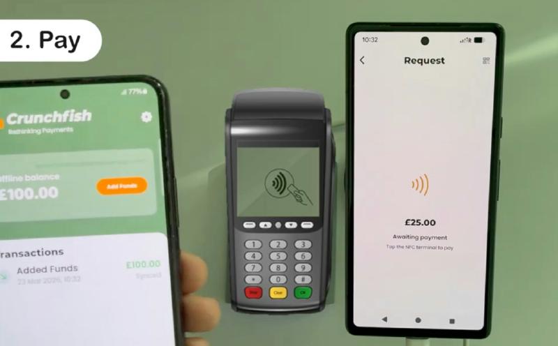 Crunchfish has released a new demo video showcasing its governed offline payment solution in a real-world Pay to Merchant (P2M) scenario. The video demonstrates how secure, intuitive payments can be executed seamlessly, even when the system is not available. The demonstration highlights a simple tap-to-pay interaction using NFC between a consumer device and a merchant terminal, illustrating a streamlined user journey with minimal steps and immediate confirmation. The experience is designed to feel familiar and frictionless for both consumers and merchants, while operating independently of continuous system availability.