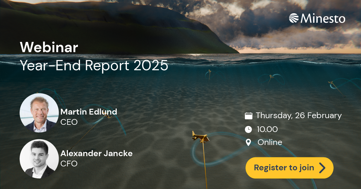 Den 26 februari publicerar Minesto, ledande utvecklare inom havsenergi, Bokslutskommuniké 2025. I samband med detta bjuder bolaget in till ett webinar där vd Martin Edlund presenterar och ger en uppdatering från bolaget, följt av en frågesession.