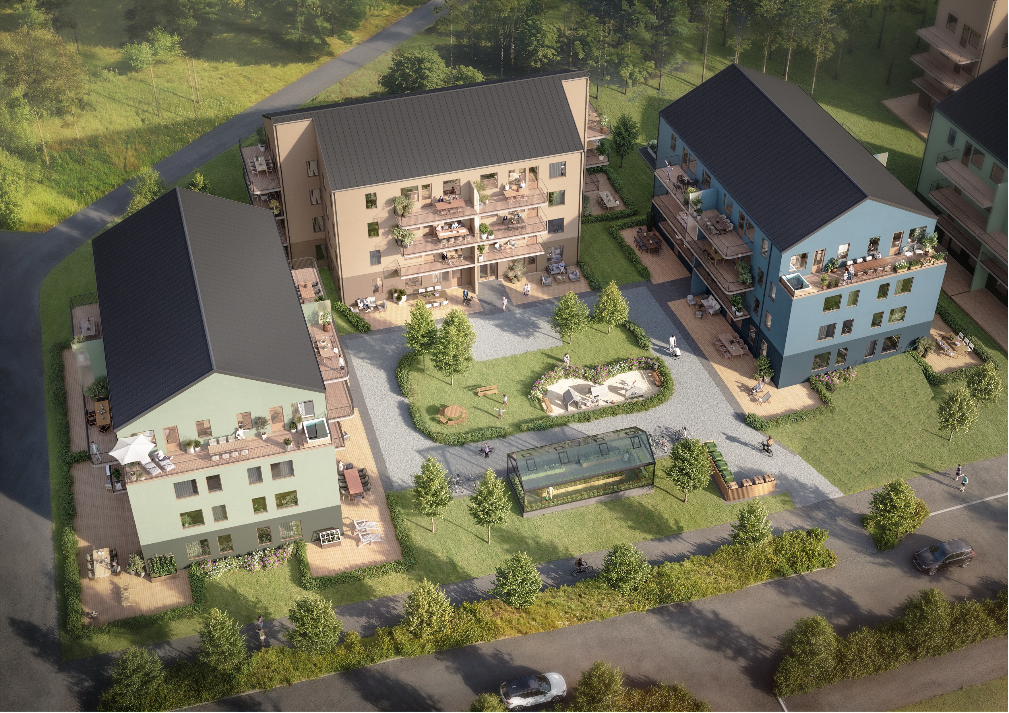 Genomförandet är uppdelat i tre etapper med 48 lägenheter i varje etapp, vilket möjliggör en strukturerad, effektiv och kvalitetssäkrad produktionsprocess.