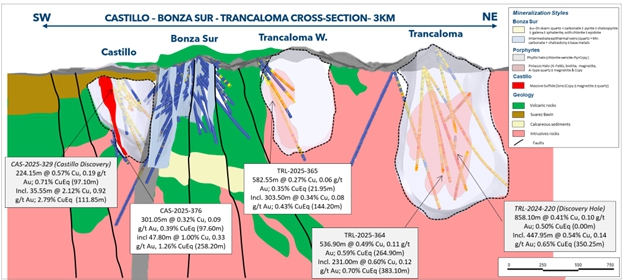 Figure 3: Castillo Trancaloma cross section showing reported drilling results